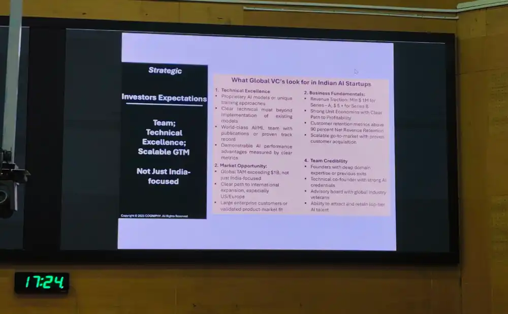 Mr Singh discussed something that everyone looking for investments should already know: investors fund individuals more than they do ideas or companies. Hence, a credible, deeply skilled team is absolutely vital for helping global funds decide to invest in the startup. Past exits, technical AI credentials, and a strong advisory board – often with ties to premier institutions like IITs – are highly valued. The ability to retain talent and foster a sustainable culture is what sets apart winning companies in the startup space.
