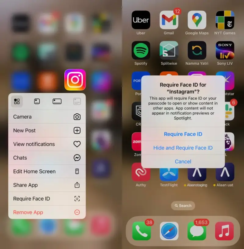 If other people use your phone regularly, you can lock specific apps in a way that they can only be opened with Face ID. Long press on any app icon and from the options, select Require Face ID to enable this feature.